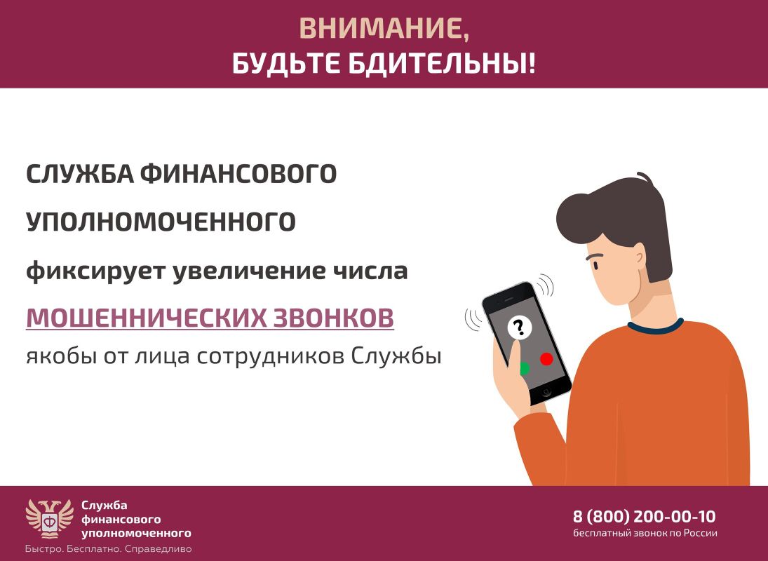 Служба финансового уполномоченного фиксирует увеличение числа мошеннических звонков якобы от лица сотрудников Службы.