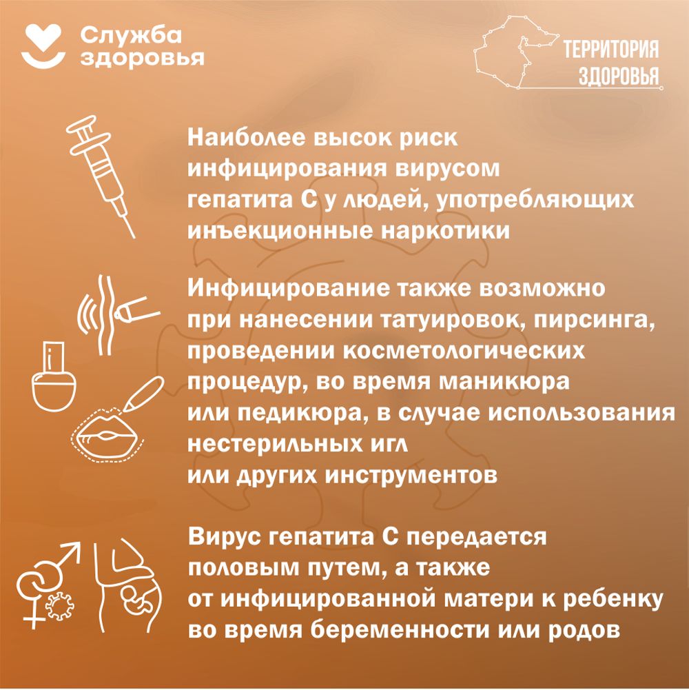 Вирус гепатита С находится в большом количестве в крови и других биологических жидкостях инфицированного человека. Заражение чаще всего происходит, когда кровь инфицированного человека попадает в кровь или на поврежденную кожу (слизистые оболочки) другого человека. Для заражения нужны видимые следы крови.Пути заражения: