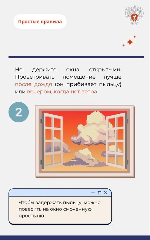 • установите дома системы для очистки и фильтрации воздуха, используйте специальные сетки на окна;